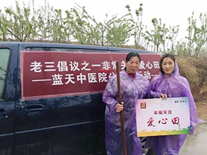 4月8日上午,河北电视台农民频道“非常关注”栏目携手石家庄蓝天中医院开展“认领爱心田”公益活动。他们一行8人走进赞皇县土门乡鲍家滩村,蓝天中医院将秦玲芬家的一亩爱心田全部认领,帮助她家解决了春耕中的实际困难。