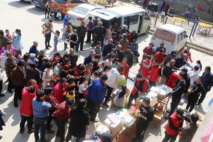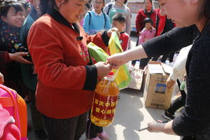 蓝天中医院与社人各界爱心人士共同为西尖山村的村民捐献了米面油及日用品等大量的爱心物资。