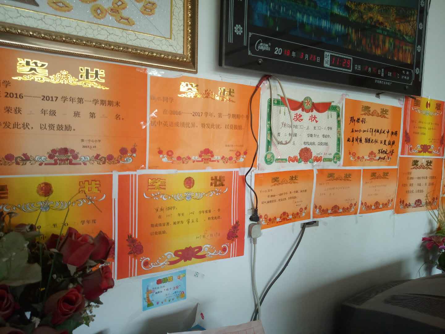 虽然生活困难,但爷爷奶奶一路坚持着让两个孩子上学。小田旭与妹妹斯怡也特别懂事,有空就帮爷爷奶奶干活,学习成绩也特别棒,家里的墙上贴满了两个孩子的奖状。